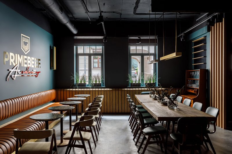 «Исходное пространство было мне хорошо знакомо: здесь долгие года размещались кафе и рестораны, один сменяя другой. Видимо, тихий переулок немного в стороне от Сретенки не слишком подходит для заведений. При этом для Primebeef Academy места лучше не придумаешь — в окна не заглядывают любопытные прохожие, но при этом обеспечена близость к центру.