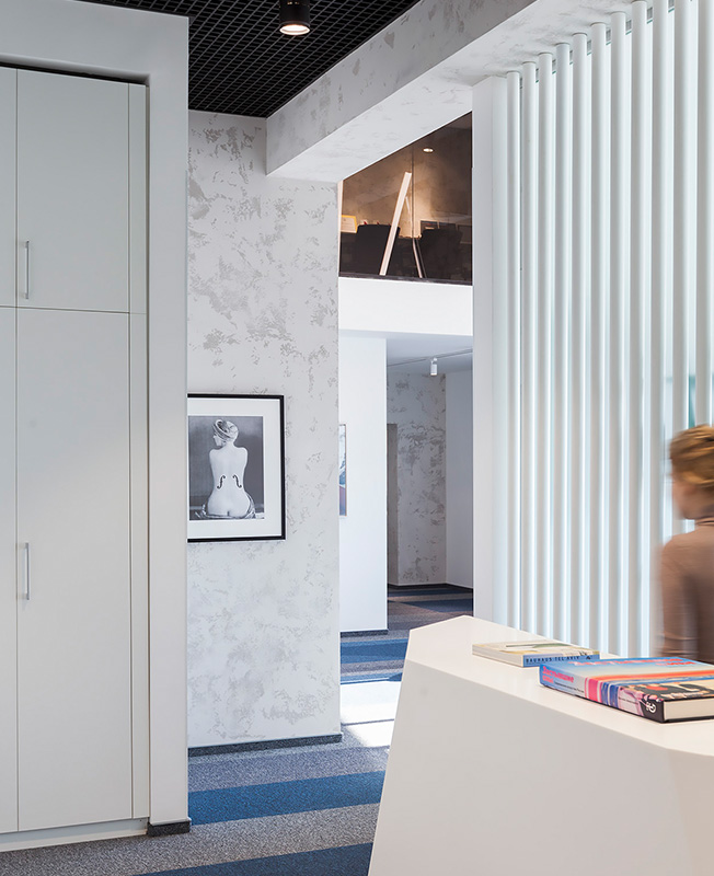 Основатель агентства Дмитрий Дудинский коллекционирует искусство, и новому офису предстояло стать местом обитания некоторых работ. Так возникло сложное галерейное пространство, в котором можно принимать гостей и проводить дружеские мероприятия.