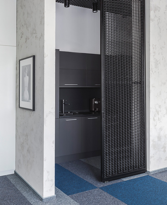 «Пространство функционально поделено на два блока, — рассказывают архитекторы. — В первый мы выделили зоны, связанные с руководством компании и важными переговорами с клиентами. Это приемная, кабинет руководителя, переговорная, гостевой санузел, а также небольшая кухня для обслуживания гостей. Второй блок — просторная рабочая зона для сотрудников с двусветным Open Office, креативной зоной переговоров, зоной архива и системами хранения, а также собственной кухней».