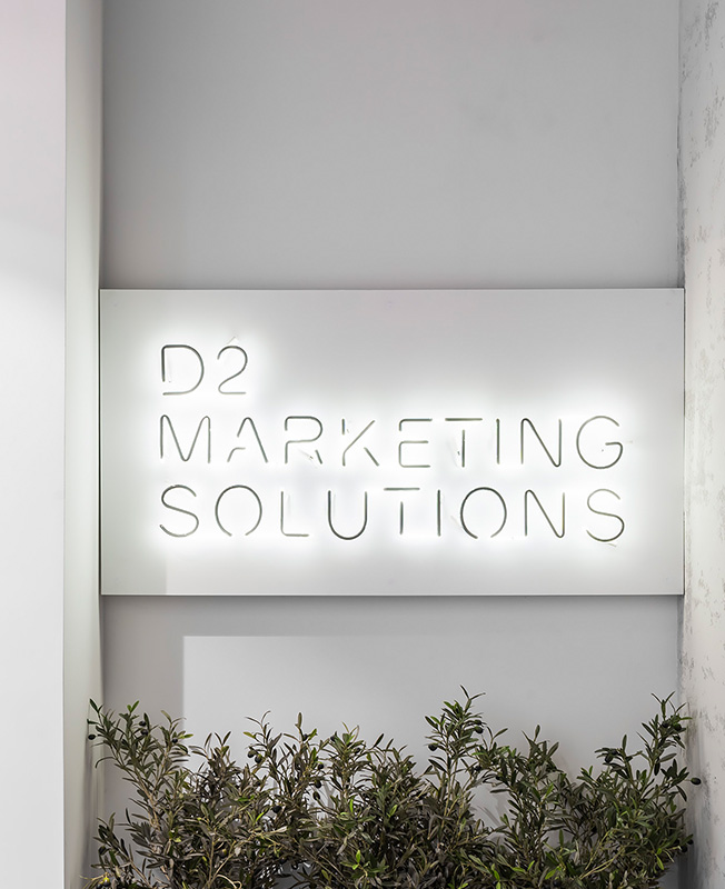 D2 Marketing Solutions известно не только как успешное PR-агентство, но и как центр продюсирования концептуальных событий. Среди клиентов — LVMH, L'Oreal, Estee Lauder, Bacardi, Pernod Ricard, Swatch Group, Richemont, Nestle, Coty. При организации мероприятий заказчик нередко использует яркие декорационные элементы — дизайн же своего офиса он желал видеть максимально лаконичным.