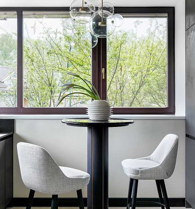 При выборе мягкой мебели у дизайнеров был другой подход: «Мы руководствовались комфортом заказчика, а также надежностью производителя». Диваны и кровать Flexform, кресла Giorgetti и Molteni&C, стулья Minotti стали удачным решением.