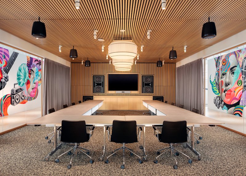 Зал заседаний в офисе Warner Brothers Records. На стенах работы современного художника Тристана Итона.