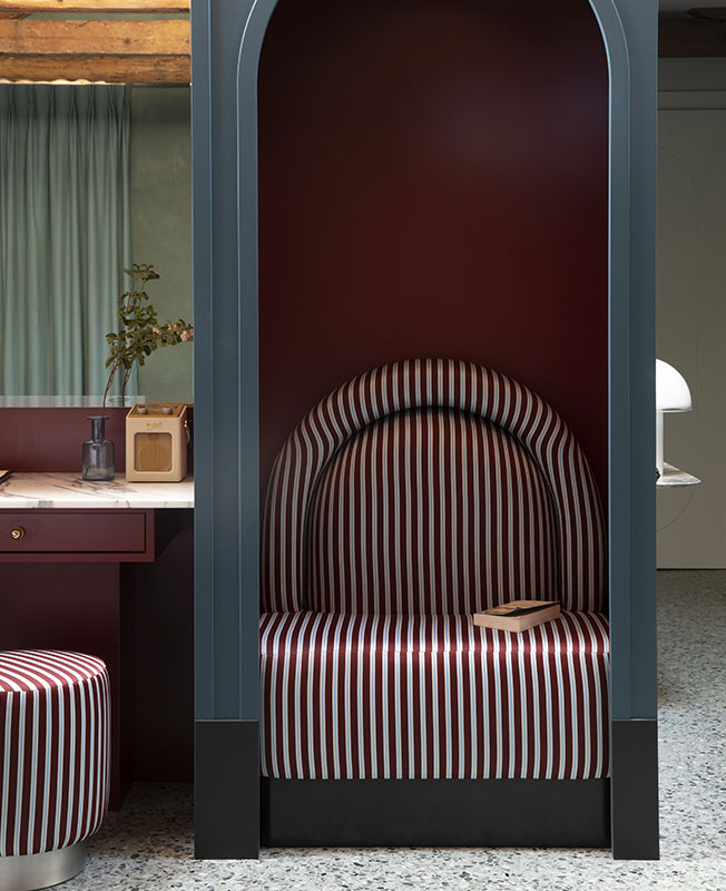 Элементы, которые сильны с точки зрения идентичности, мы пытались усилить венецианским вдохновением: нам помогли симметрия и богатый декор (роспись, маркетри, текстиль), черный лак, мрамор, терраццо».