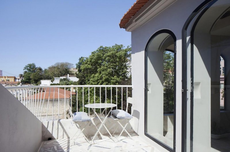 Эта небольшая квартира расположена на пятом этаже здания, построенного в 1819 году, в характерном для Португалии того времени архитектурном стиле помбалино (смесь позднего барокко и классицизма). Архитектор намеренно решил сохранить исторические элементы интерьера, умело соединив их оригинальными современными решениями.