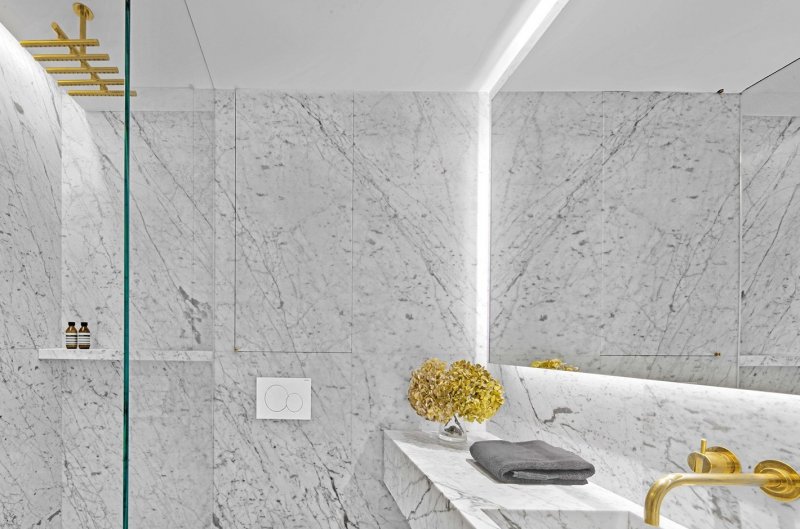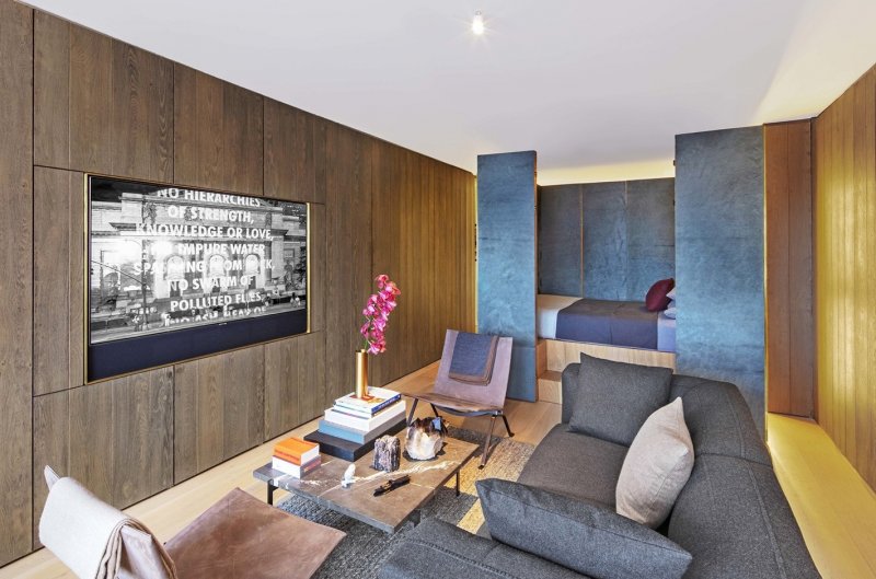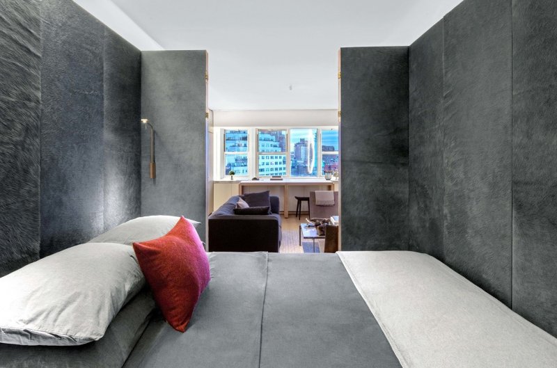 Маленькая квартира-студия Jewel Box в Нью-Йорке — это исследование архитектора Мессаны О'Рорк на тему эффективного использования пространства. Заказчик хотел яркий и эффектный интерьер в духе номера в бутик-отеле, а еще — не видеть собственную кровать. Архитектор взяла за ключевой образ шкатулку и поместила в нее множество оригинальных решений. Локация: Нью-Йорк, США Площадь: 40 кв.м Архитектор: Мессана О'Рорк Квартира расположена в однообразном здании из белого кирпича, построенном в 1957 году и переоборудованном в кооперативное жилье в 1983 году. Окна выходят на запад, отрывая впечатляющий вид на город. Убрав все существующие в квартире перегородки, архитектор разместила вдоль северной и южной стен шкафы из европейского дуба — кроме прочего, они поглощают шум из соседних квартир. В одном шкафу находятся книги, одежда, аудио-видео-техника и телевизор. В другом — холодильник / морозильник и кухонная зона. Кровать спрятали в обшитый снаружи золотой медью контейнер — внутри он обшит выкрашенной в серый цвет шкурой коровы. Ванная комната облицована каррарским мрамором. Мы разбираем интерьеры - подробно! Чтобы вы могли лучше понимать, на чем строится хороший интерьер, чтобы учились у лучших. Подготовка такого материала требует времени, а интерьеров много. Помогите нам выбрать самые достойные - проголосуйте ЗА интерьер, если вам хочется увидеть его в расширенной публикации и узнать детали создания.