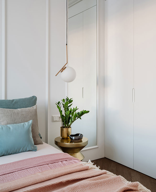 Заказчики хотели светлое современное пространство, в котором было бы много воздуха. Молодая пара также была не против ярких акцентов и элементов в классическом стиле. Еще одно условие — в будущем гостевая спальня должна была легко трансформироваться в детскую.