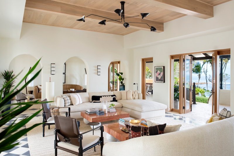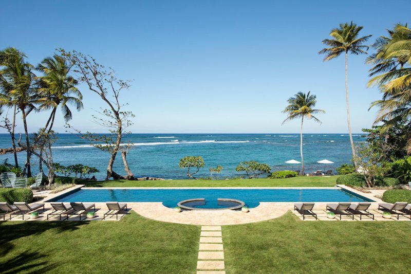 В 2017 году ураган «Мария» разрушил этот идиллический пейзаж — деревья были повалены, потолки пробиты, полы вздыбились. Ремонт и реновацию виллы поручили Анне Бибер и Элизабет Рогофф из нью-йоркской студии Champalimaud. Они использовали ключевые элементы исторической постройки, включая нейтральную палитру, натуральные дубовые потолки и черно-белые плиточные полы с шахматным рисунком.