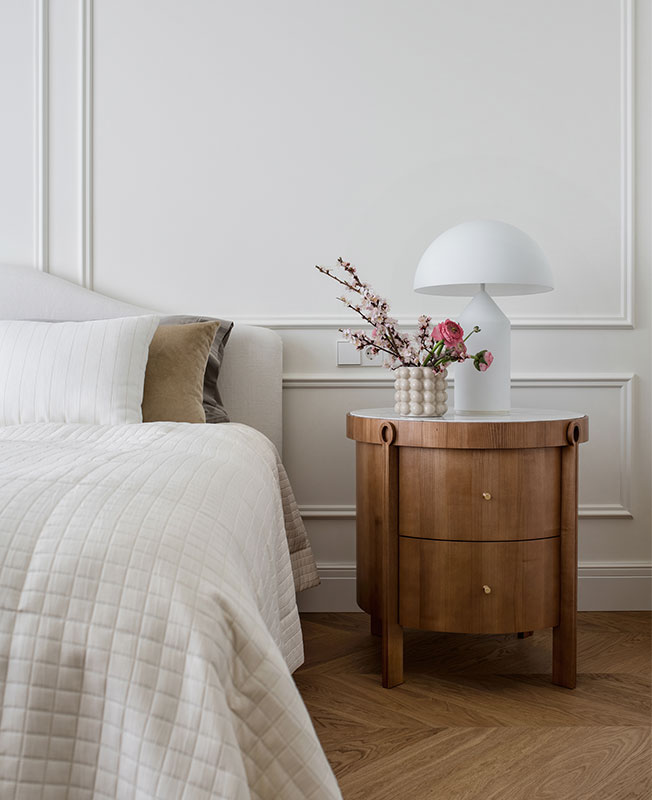 Архитекторы Слава Балбек и Евгения Дубровская (balbek bureau) оформили апартаменты 150 кв. метров в центре Киева. Современный интерьер для молодой женщины создавался с отсылками к классике: лаконичная мебель соседствует с лепниной и карнизами, а яркие акценты выигрышно смотрятся на фоне традиционного французского паркета и белых стен.