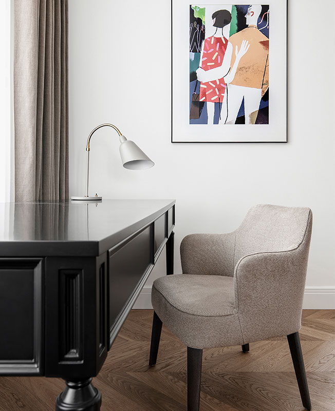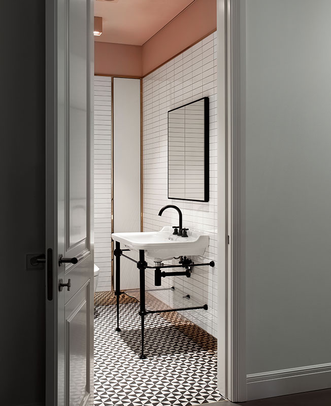 Еще одна важная составляющая проекта — свет от культовых дизайнеров и современных знаменитых авторов. Среди них — и ставшая настоящей иконой лампа Вико Маджистретти для Oluce в спальне, и практичный настольный светильник в рабчоей зоне Арне Якобсена от &tradition, и лаконичные бра в ванной пуриста Майкла Анастасиадиса для Flos, и выразительная люстра Atelier Areti в гардеробной от сестер Кершбаумер (Gwendolyn & Guillane Kerschbaumer).