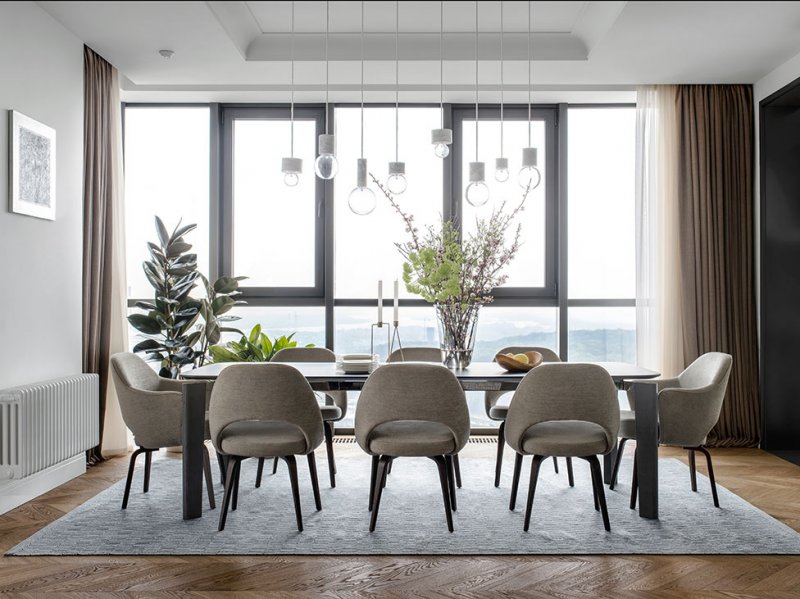 Столовая. Обеденный стол Oskar, диз. Винсент ван Дейзен, B&B Italia. Обеденные стулья Saarinen Conference chair, диз. Ээро Сааринен, Knoll.