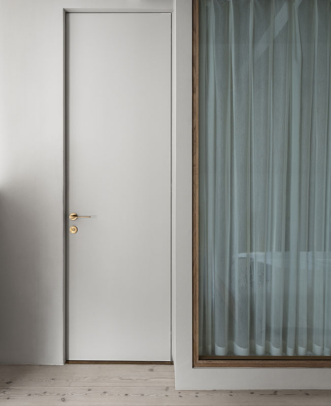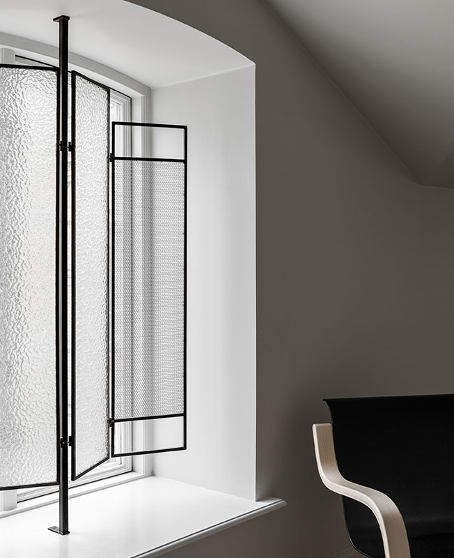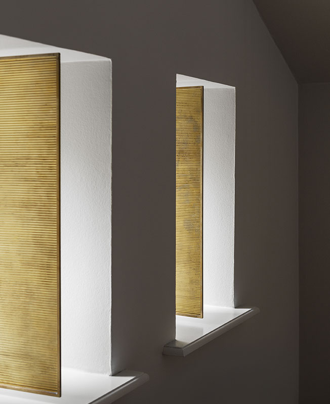 Сохраняя наследие Моллера студия Frama реализовала нестандартные элементы с особым вниманием к деталям. Внутри дома — светло-серый интерьер, текстуры и материалы которого сами по себе являются декором. Поворотные латунные ставни акцентируют глубоко утопленные окна. С внешней стороны черные оконные рамы придают элегантность «выветрившимся» кирпичным фасадам.