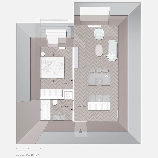 Дизайнеры Томас Умбрасас, Айдас Барзда, Таутвидас Вилейкис и Юсте Сурплитэ из литовской студии YCL оформили небольшую квартиру площадью 45,21 кв. метр в Вильнюсе.