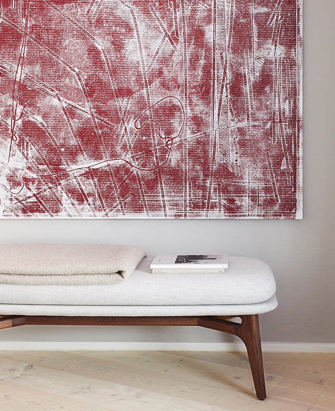 Книжные полки из черного ореха спроектированы турецкой студией Autoban. Свет — это произведения калифорнийца Шарля де Лиля и лондонского дизайнера Майкла Анастасиадиса. Коврики ручной работы — от шведского бренда Kasthall. Подбор произведений искусства включает скульптуры Флориса Вуббена и Лерона Уилсона, керамику Ланы Ковой и картины Пайтима Османа.