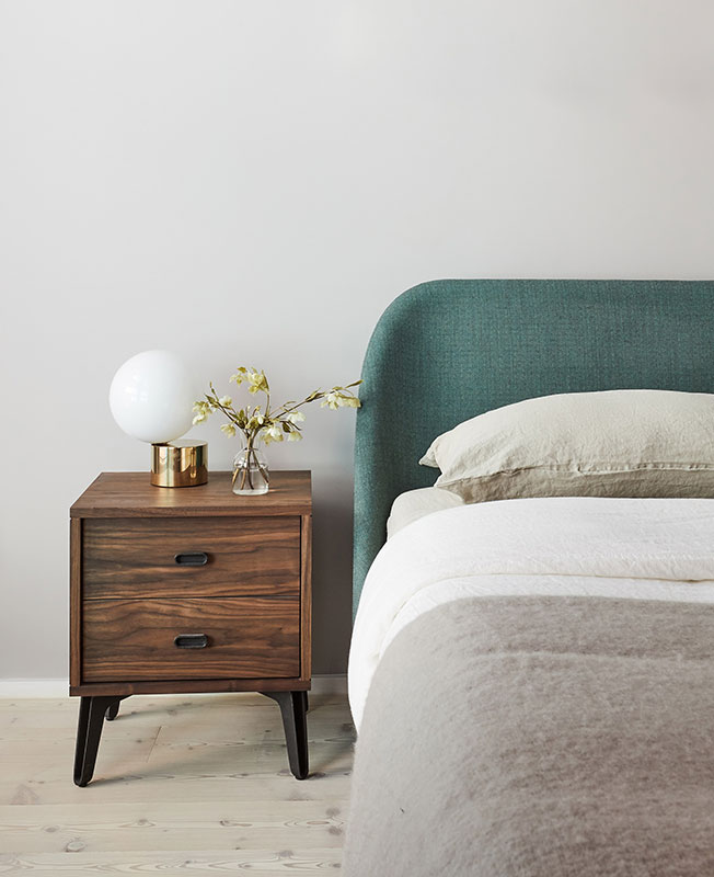 В спальне команда разместила тумбочку и высокий сундук Мэтью Хилтона.