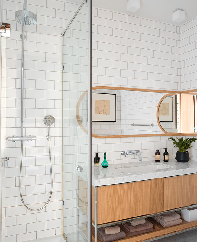 Цвет стен, текстиль, большую часть мебели, частично ванные комнаты, аксессуары и все декоративное освещение предстояло заменить. В отделке сочетали дерево, шерсть, лен, кожу — все должно было быть натуральным и тактильным.