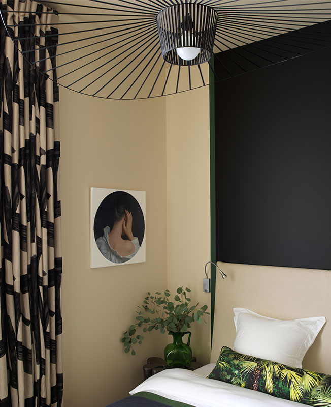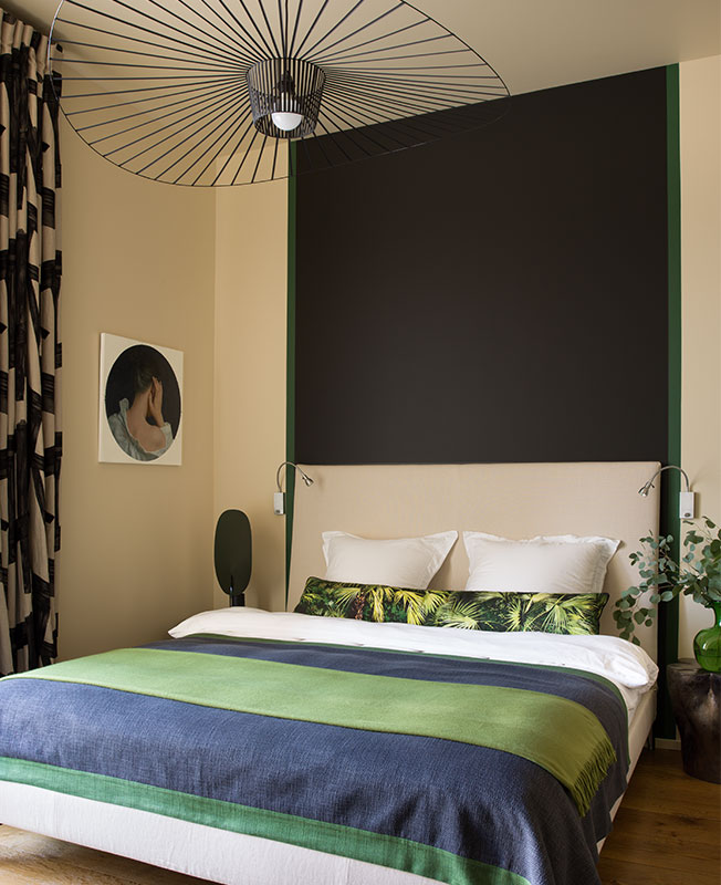 Цветовая палитра складывалась не без случайностей. Сначала появились портьеры в гостиной — мы были очарованы этим правильным зеленым оттенком. Чтобы замаскировать смещенный очаг камина, дымоход выкрасили в черный цвет, который потом перешел и в другие комнаты. Он создает контраст, добавляет графичности, уравновешивает пространство, и все-таки черный всегда смотрится стильно — он вне времени.