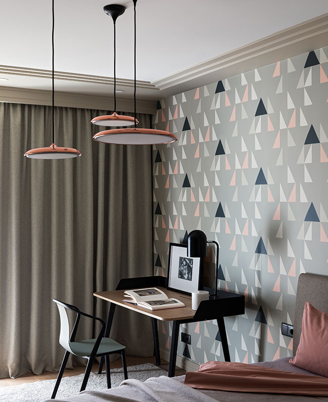 Детская. Кровать Nakts Mebeles. Стул Belleville, диз. Ронан и Эрван Буруллеки, Vitra. Светильники Nordlux. Обои Scion. Стеллаж и ковер Ikea. Настольный светильник Aromas del Campo. На столе фотография Дмитрия Войновского.