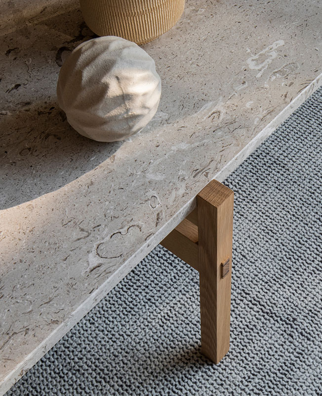 Таким появилась коллекция Kinuta — 12 предметов мебели, сделанных на заказ. Все предметы в значительной степени опираются на естественные отсылы к природному аспекту.