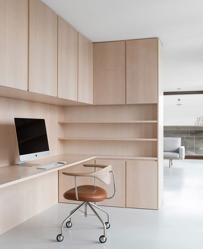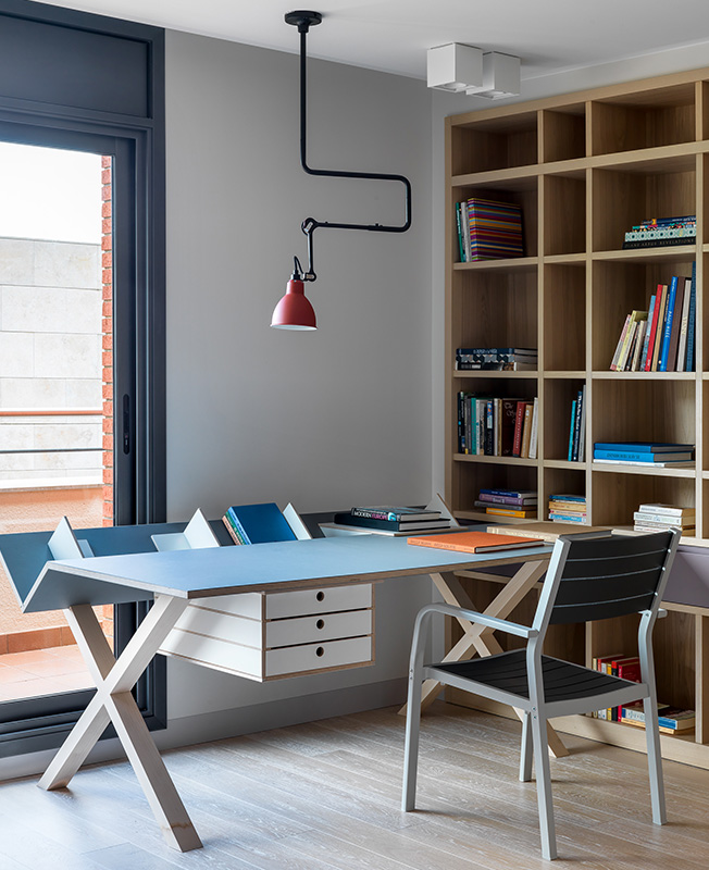 Новый проект Елизаветы Голубцовой и Марины Бирюковой, архитектурная группа BIGO — дом в Барселоне. Авторы спланировали его для семьи с тремя детьми. Кабинет хозяина дома. Светильник Lampe Gras — модели этого бренда архитекторы часто используют в своих интерьерах.