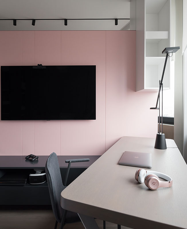 Маленькая квартира в ЖК «Технопарк» на Нагатинской набережной — первое самостоятельное жилье девушки-студентки. Проект дизайнера Дарьи Васильковой, бюро Art Group. Письменный стол, Versmisswen.