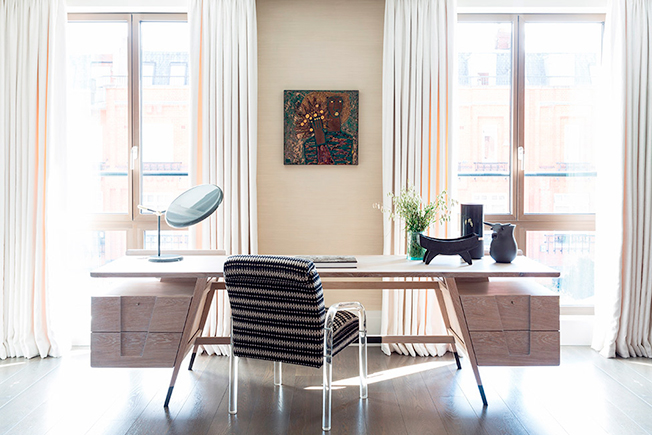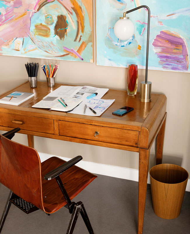 Проект Софи Эшби, Studio Ashby. Рабочий стол по дизайну Джо Понти. Настольная лампа, диз. Ники Зупанц для Se.