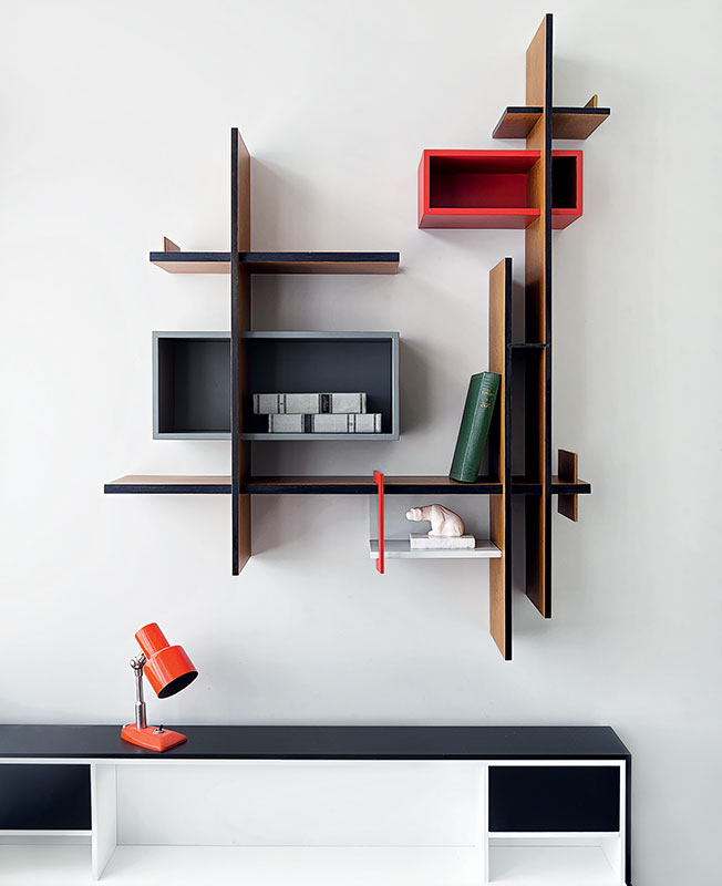 Наталья Сохнюк и Елена Морозова спроектировали в Москве просторную, 160 кв. м, квартиру для семьи с тремя детьми. Их интерьер — оммаж и признание в любви дизайну ХХ века. . Рабочее место старшего сына. Геометрия книжной полки вдохновлена графическими работами Якова Чернихова. Винтажная лампа Stilnovo.
