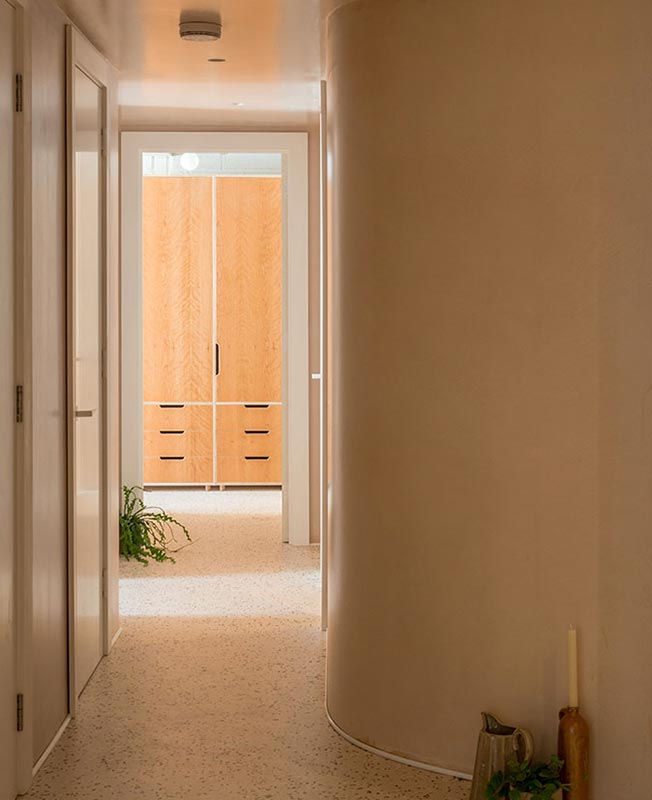 Дизайнеры Scenesmith стремились почтить память о прошлой истории, использовав повсюду отсылы к керамике и глине. Установлены тональные отношения между теплыми оттенками терракотовой штукатурки и цветом плиток для ванных комнат.