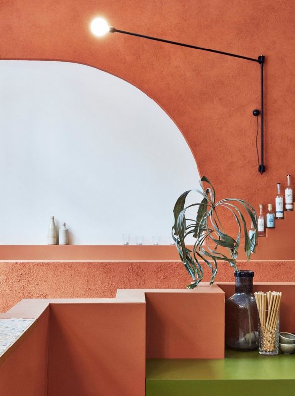 Главной задачей архитекторов Studio Gram в работе над проектом мексиканского ресторана Chica Bonita в Сиднее было уйти от привычных штампов и показать мексиканскую культуру, избежав при этом чрезмерной цветовой палитры, с которой ее обычно ассоциируют. Последние 20 лет в здании, где теперь находится ресторан, был магазин велосипедов — каменные арки, железные потолки и паркетные полы, оставшиеся с тех времен, решили не трогать. Локация: Сидней, Австралия Архитекторы: Дэвид Бикмор, Studio Gram Фотограф: Тоби Пит Доминирующий цвет интерьера — терракотово-оранжевый. Это имитация цвета мексиканской пустыни. В свою очередь, ступенчатость и многоуровневость (в качестве примера — стеллаж для напитков) — отсылка к архитектурному стилю, характерному для мексиканского полуострова Нижняя Калифорния. В числе других деталей — керамические вазы, много зеленых растений в горшках и минималистичные тканые панно и картины на стенах. Их заказчик привез с собой из путешествий по Мексике. Мы разбираем интерьеры - подробно! Чтобы вы могли лучше понимать, на чем строится хороший интерьер, чтобы учились у лучших. Подготовка такого материала требует времени, а интерьеров много. Помогите нам выбрать самые достойные - проголосуйте ЗА интерьер, если вам хочется увидеть его в расширенной публикации и узнать детали создания.