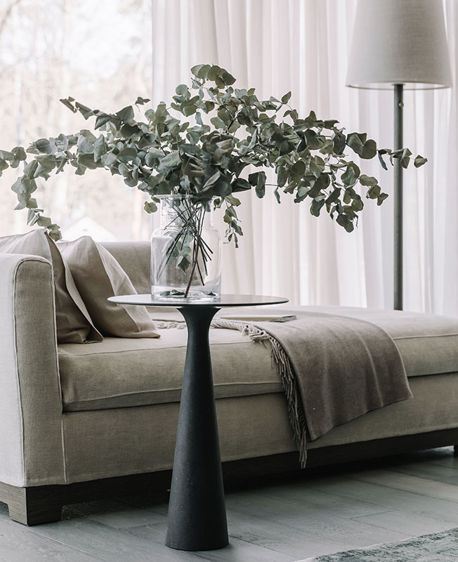Дом построен в современном стиле и великолепно вписан в прибрежную природу. «Мы всегда стараемся, чтобы архитектура здания нашла отражение в интерьере, поэтому стены решены максимально лаконично, при этом отдельные элементы своей пластикой напоминают мягкие изгибы песчаных дюн».