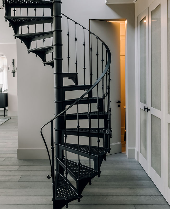 Гораздо больше времени ушло на создание лестницы, ведущей на второй уровень, на террасу. Авторы проекта даже рассматривали вариант гидравлического лифта, но в итоге остановились на классической винтовой конструкции. «Винт», выполненный местным кузнецом из темного металла, добавил интерьеру легкости и французского шика.