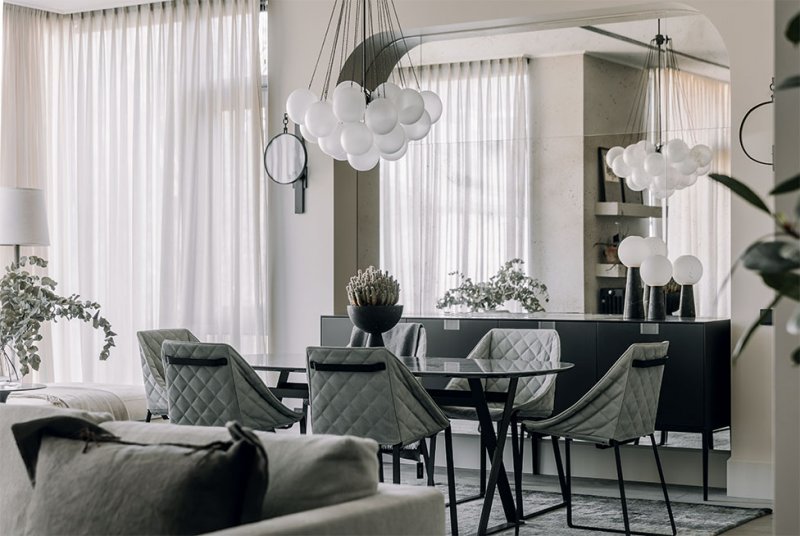 Новая работа дуэта — двухуровневый пентхаус в Юрмале. Молодая пара, купив квартиру (180 кв. метров) в новом жилом комплексе, попросили Екатерину и Юлию создать для них «место силы» — прибалтийский курорт прельстил москвичей близким расположением, чудесной природой, дачной атмосферой.