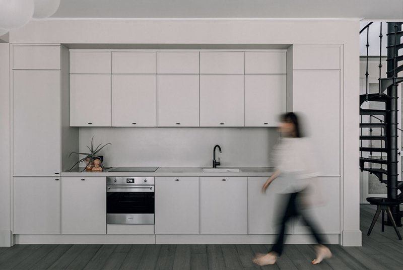 Дизайнеры спроектировали всю встроенную мебель, а также мечту хозяев — простой и лаконичный камин. Как вспоминают Екатерина и Юлия, они столкнулись с тем, что местные строители привыкли работать неспешно. «Такой ритм, непривычный для нас, похоже, свойственен всем жителям приморских городов. Впрочем, мы быстро подстроились. А профессионализм сотрудников салона Krassky, который помог с заказом мебели, превратил работу над проектомв удовольствие».