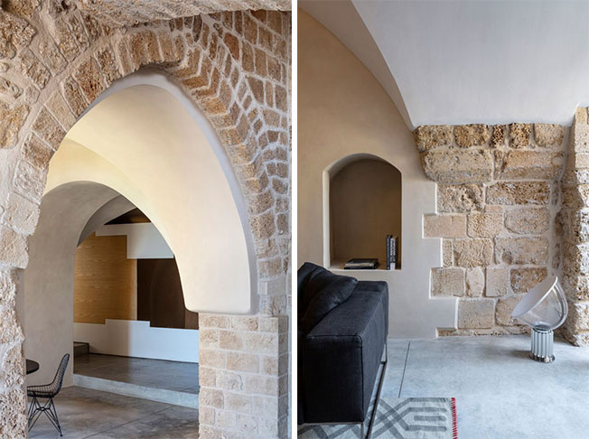 Старые каменные стены вместе с большими арочными проемами служат фоном для череды комнат в этой квартире, которая отремонтирована архитекторами Pitsou Kedem в Яффе.