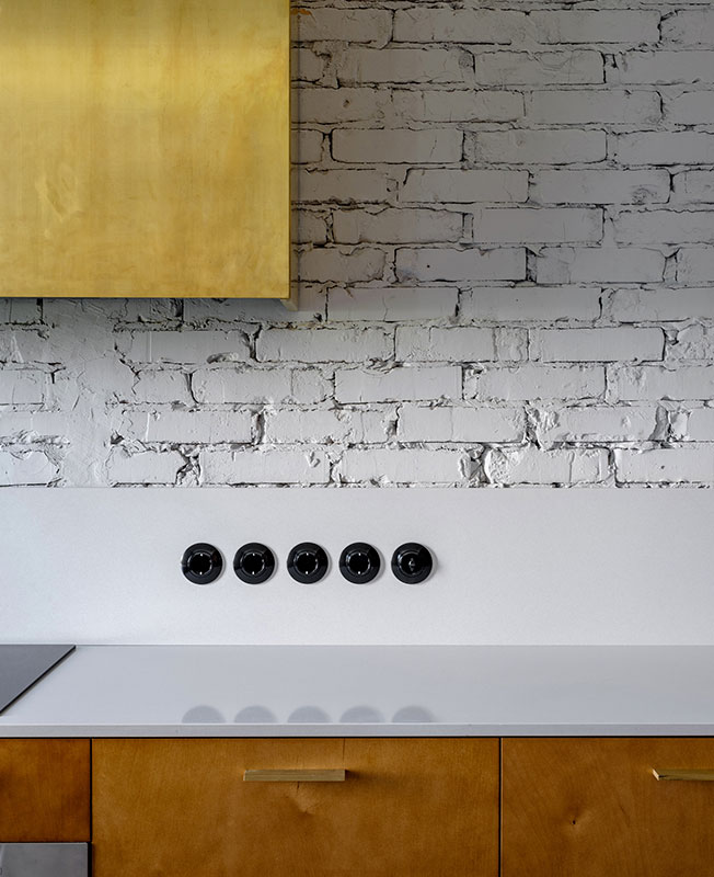 Кухню архитектор спроектировал сам, применил тонированную фанеру и латунь в деталях.