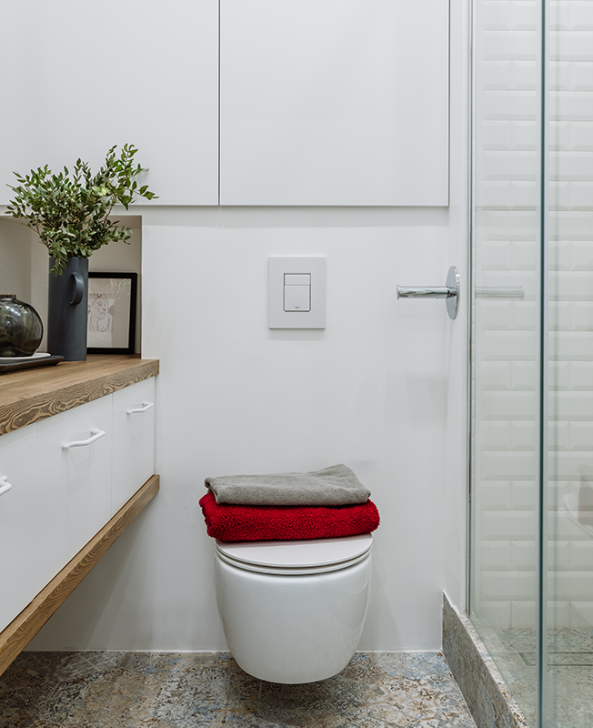 Зона столовой. Стены — декоративная штукатурка, краска Little Greene. Дизайнер Елена Сидорина оформила московскую квартиру площадью 59 кв. метров. Задачей было создать современный интерьер, не лишив его шарма старого фонда. «Интерьер создавался для молодого человека, который провел свое детство в этой квартире и хотел вдохнуть в нее новую жизнь, — рассказывает дизайнер. — Нужно было сделать не только функциональное пространство, но и сохранить атмосферу старины, которую таила в себе сталинка. Гостиная. Диван и тумба под ТВ выполнены на заказ. Журнальный стол Barcelona Design. Ковер DesignCarpet. Керамика «Небо». Картина – Анастасия Копытцева. Стены — декоративная штукатурка, краска Little Greene. Молдинги «Европласт». Гостиная. Диван и тумба под ТВ выполнены на заказ. Журнальный стол Barcelona Design. Ковер DesignCarpet. Картина – Анастасия Копытцева. Стены — декоративная штукатурка, краска Little Greene. https://vk.com/esinteriorhttps://www.instagram.com/elena__sidorina/https://www.facebook.com/profile.php?id=100007742686642http://esinterior.ru/ Когда я первый раз зашла на объект, меня торжественно встретили атрибуты старого фонда: отходящие от стен обои, потрескавшаяся штукатурка, тускло освещенные лампочкой Ильича комнаты и планировка, которая приводила в легкое недоумение. Например, в ванную можно было пройти только через кухню, которая была всего 2,5 кв. метра и, собственно, на ней помещалась только одинокая газовая плита 60-х годов. Гостиная. Диван выполнены на заказ. Журнальный стол Barcelona Design. Ковер DesignCarpet. Керамика «Небо». Картина – Анастасия Копытцева. Стены — декоративная штукатурка, краска Little Greene. Перепланировка была необходима. Мы решили увеличить кухню, присоединив к ней площадь ванной команты. А чтобы все манипуляции с квартирой были законными, на территории кухни оставили технику, а в зону ванной вынесли рабочую поверхность и барный стол. После перепланировки была организована прихожая, гостиная, душевая, кухня, спальня и комната под будущую детскую. Кухня. Мебель сделана в столярной мастерской. Стулья Unika Moblar. Плитка на фартуке Aparici. Светильники Loft Concept. Керамика «Небо». В проекте я использовала много материалов с эффектом состаренности: это напольная плитка с потертостями, бетонная стена в гостиной и отделка мебели, как будто ее вытащили из чулана. Особенно мне нравится гипсовый барельеф в спальне. Его делали специально на заказ под размер изголовья кровати. В спальне он стал основным акцентом, который притягивает внимание и разбавляет нейтральную цветовую гамму. В целом выбор мебели происходил по основным трем критериям: удобство, внешний вид, бюджет. Много предметов в данном проекте делали на заказ. Кухня. Мебель сделана в столярной мастерской. Плитка на фартуке Aparici. Керамика «Небо». Кухня. Мебель сделана в столярной мастерской. Стулья Unika Moblar. Плитка на фартуке Aparici. Светильники Loft Concept. Керамика «Небо». В основе палитры спокойные тона, разбавленные контрастными акцентами. Красный диван в гостиной «держит» интерьер комнаты, не давая ему рассыпаться на осколки серых оттенков. Чтобы интерьер смотрелся живо и динамично, добавлены черные детали: металлические перегородки, ручки на фасадах кухни и дверях, в черный выкрашены все трубы и радиатор, стулья — с черным каркасом. Во время ремонта появился сюрприз в виде трубы на кухне, которая обнаружилась во время демонтажа стены. Решили не зашивать в короб, а тоже покрасить в ч