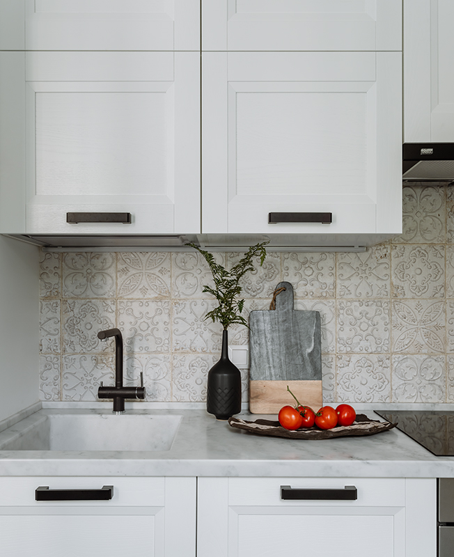 Кухня. Мебель сделана в столярной мастерской. Плитка на фартуке Aparici. Керамика «Небо».