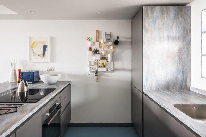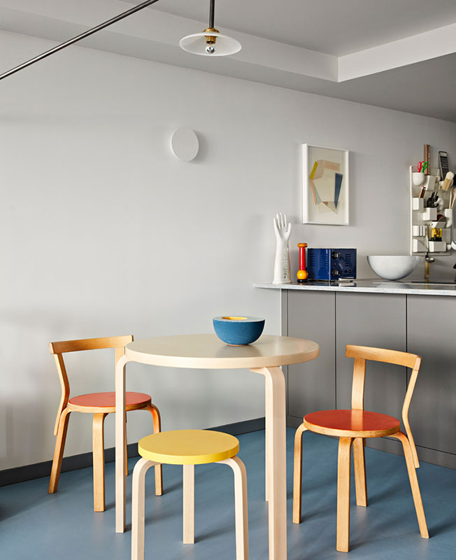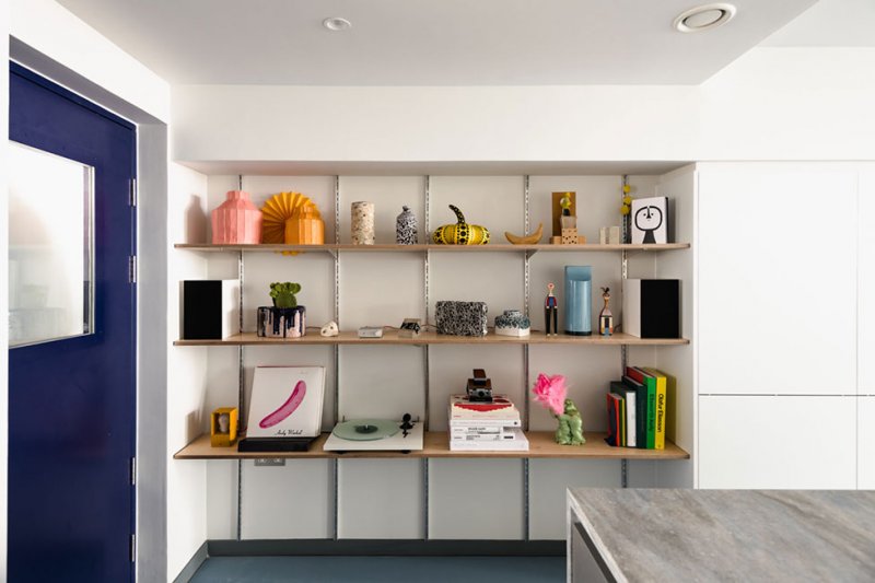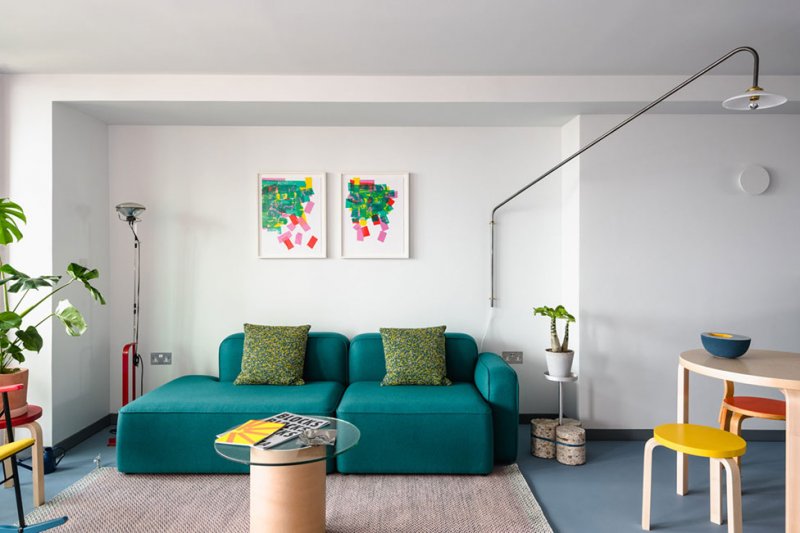 Студия Ab Rogers Design представила себе вымышленного владельца квартиры, который любит винтажный дизайн, кино и моду — и соответствующим образом декорировала пространство. Яркие синие, красные и желтые пятна определяют жилое пространство, спальня украшена персиковым оттенками.