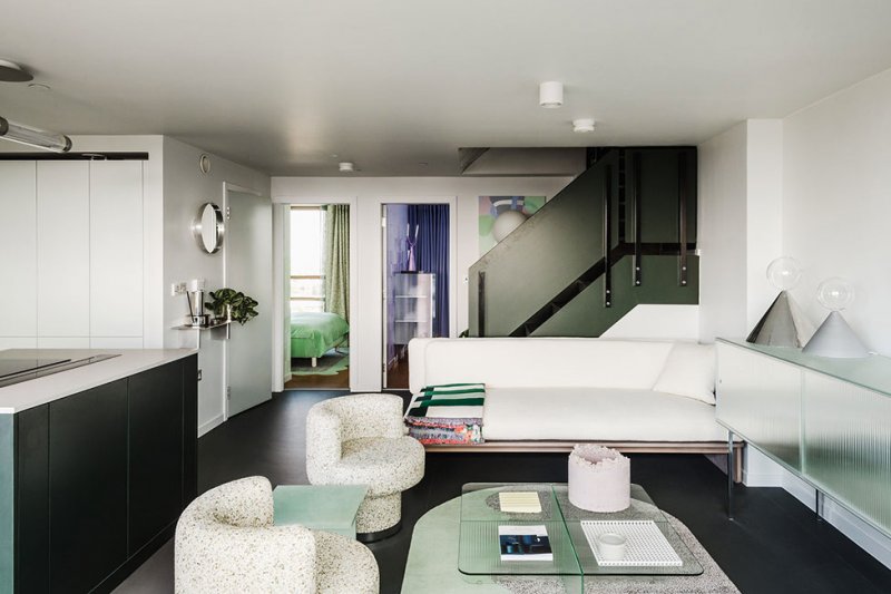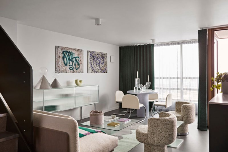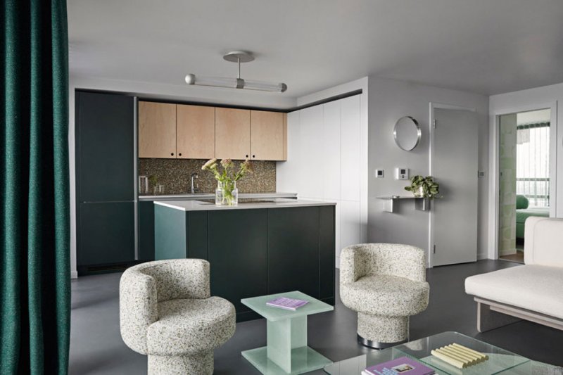 Застройщики London Newcastle и Telford Homes поручили Ab Rogers Design и 2LG Studio полный капремонт двух квартир. Дизайнеры 2LG Studio создали модельные интерьеры с геометричными обоями 60-х, скандинавской мебелью, бархатными изголовьями и современными образцами дизайна.
