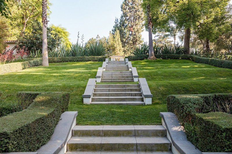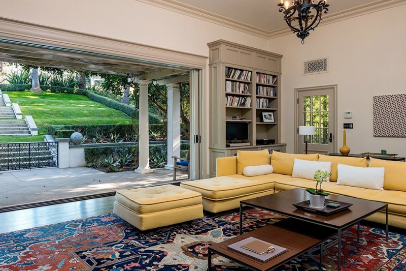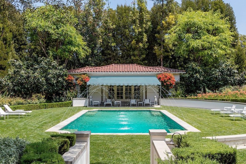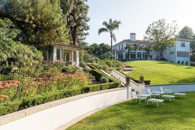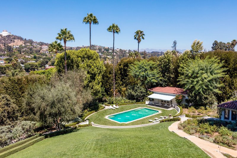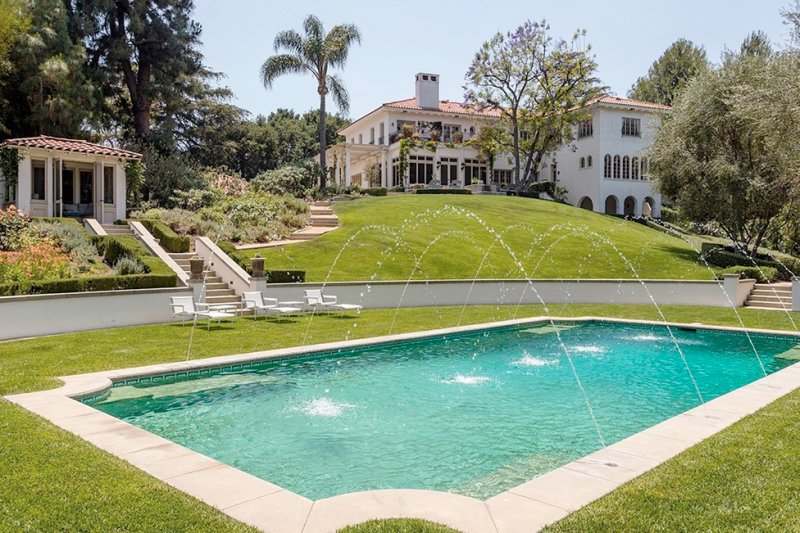 Дом площадью почти 700 кв. метров стоит на холмах, с которых открывается впечатляющий вид на панораму Лос-Анджелеса. Внутри — шесть спален, 10 ванных комнат, столовая, библиотека. На территории находятся гостевой дом, чайный домик, спортивный зал, бассейн и гараж.