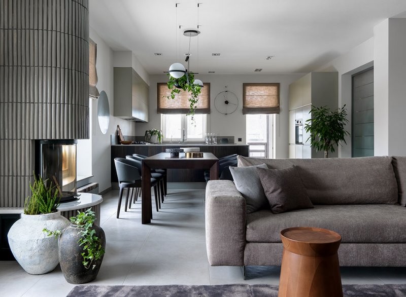 Особым украшением интерьера стали живые растения. Над обеденным столом висит светильник Palma, получивший премию German Design Award 2018. Его автор, дизайнер Антони Арола, считает, что Palma — «это ландшафтный проект, который со временем изменится как светящийся висячий сад».