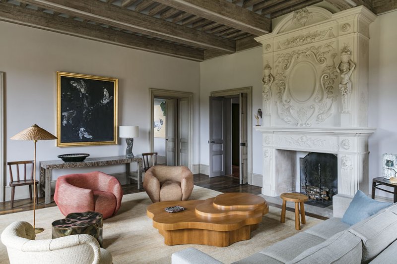 В личном убежище, вдали от столиц, царит любование современным искусством, старой архитектурой, коллекционным дизайном. Одним из самых последних дополнений к башенкам замка XVII века стала домашняя часовня, украшенная фресками художницы Клер Табуре.