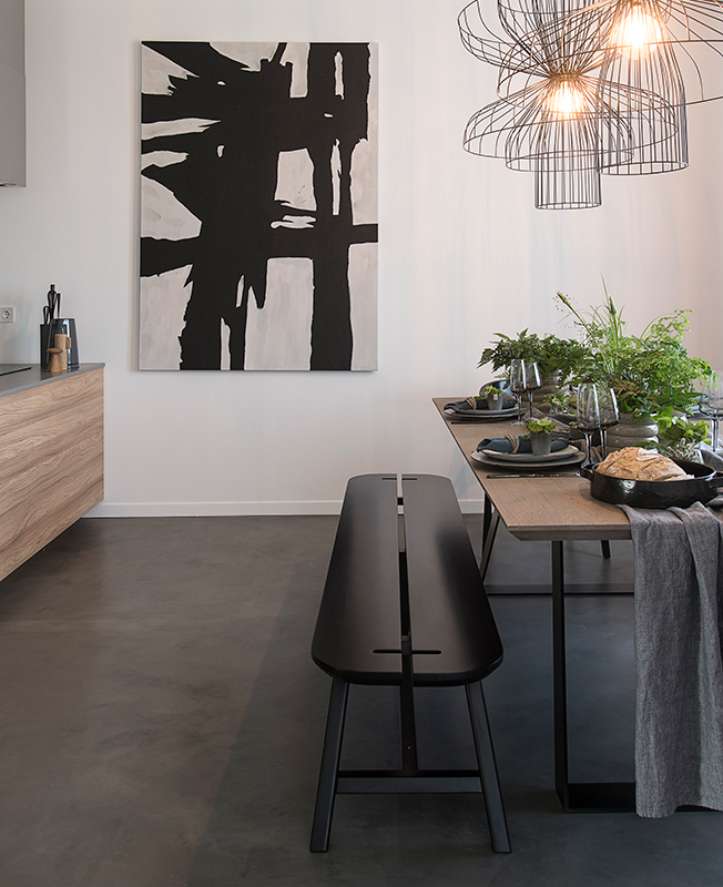 Зона кухни-столовой. Кухонная мебель Tatem. Стол, светильники Ligne Roset. Посуда Bitz, Broste Copenhagen.
