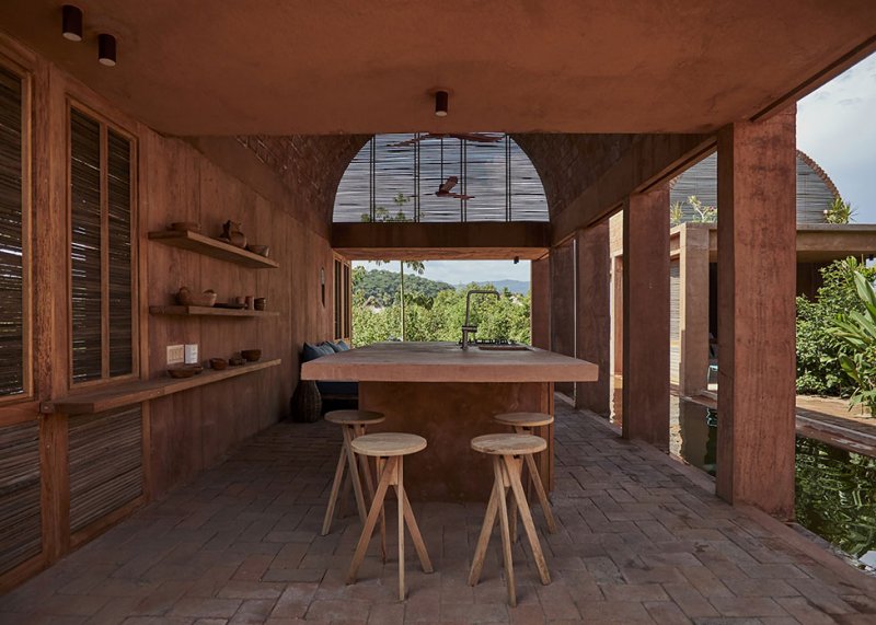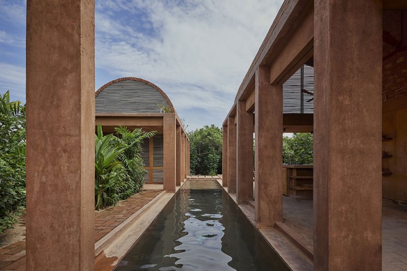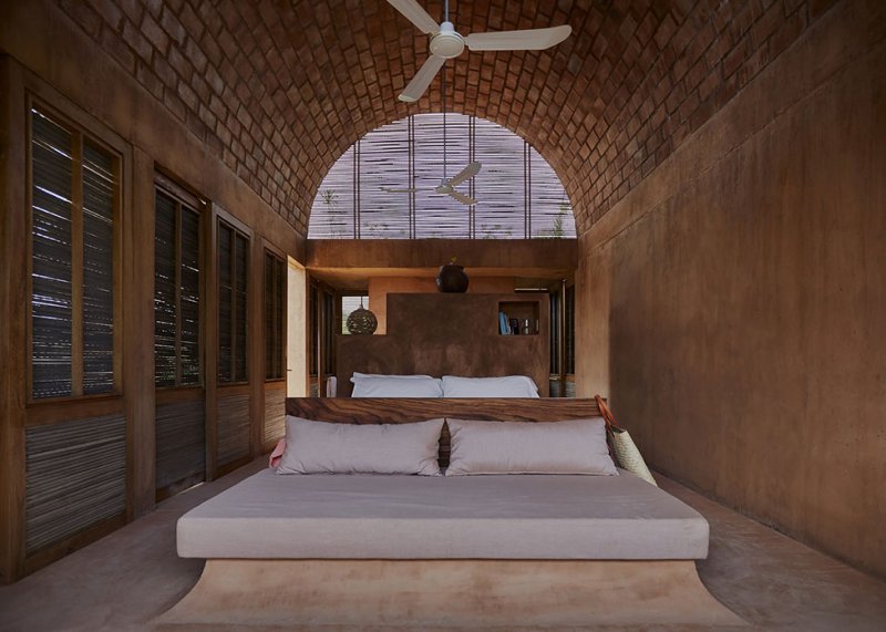 Архитектурная студия Ambrosi Etchegaray спроектировала курорт Casa Volta, включающий три кирпичных дома со сводчатыми потолками. Они стоят в густом лесу на побережье Оахаки в Мексике. Отель Casa Volta расположен между джунглями и пляжем. Посетители добираются до дома по тропинке, ведущей через густой лес к воде. Три прямоугольных кирпичных здания выстроены вокруг длинного узкого пруда. Арочные постройки объединены внутренними дворами. Каждая спальня имеет свой собственный свод, заключенный в решетку из кирпича и тростника, все комнаты выходят на частные патио. Работа, основанная на использовании местных материалов, сочетает в себе мексиканские традиции и уважение к окружающей среде. Дизайнеры объясняют, что два материала создают идеальный союз в этом климате — одновременно поддерживают тепло в прохладную погоду (кирпич) и прохладу в более обычную жаркую погоду (решетка из тростника). • Casa Volta можно арендовать на Airbnb за 200 долларов в сутки.