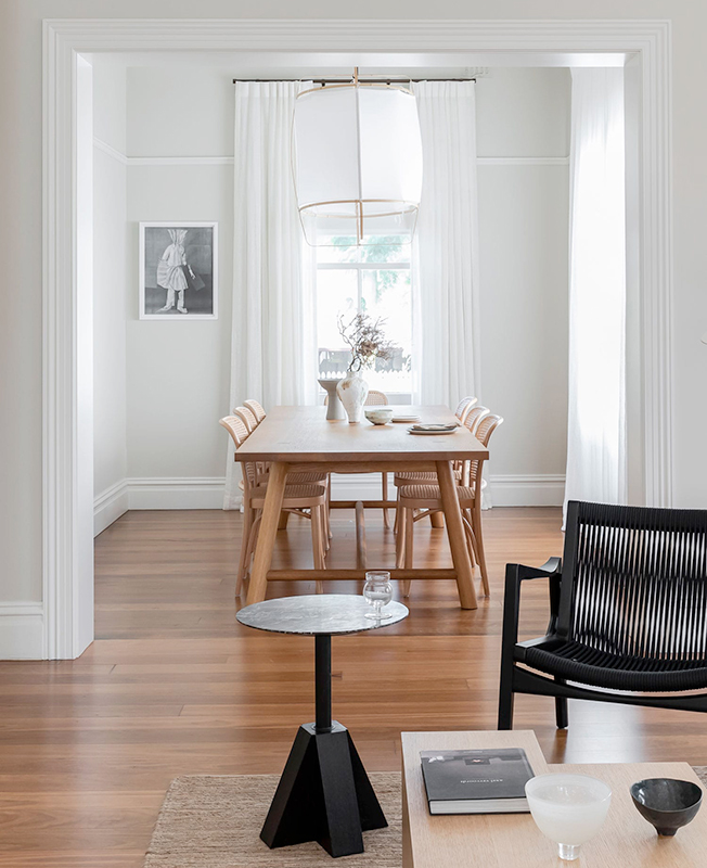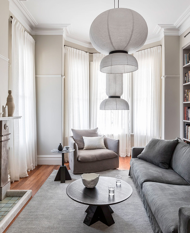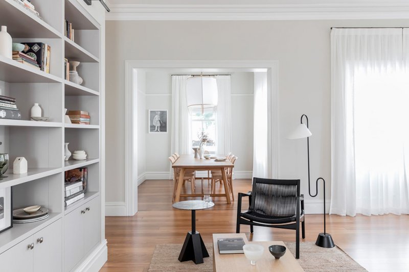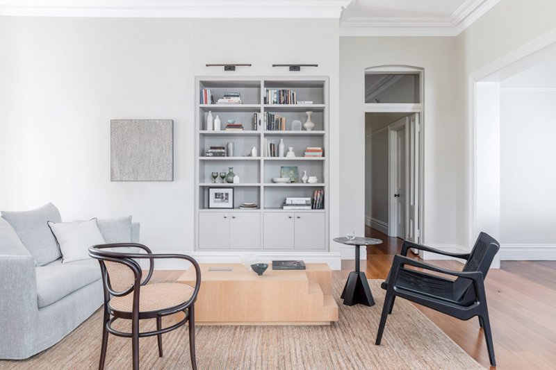 Дэниэл Боддам завершил реконструкцию викторианского дома Conigrave House в Сиднейском районе Хантерс-Хилл. Исторические детали дополнил современными элементами, воплотив «вневременную элегантность». Архитектор выделил элементы, находившиеся не в лучшем состоянии и отвлекавшие внимание от достоинств дома, и при ремонте сосредоточился на их преобразовании. «Появившиеся улучшения деликатны — они словно были здесь всегда: новые двери, плинтусы, наличники, столярные изделия и новые проемы гармонично сочетаются между собой и остаются на заднем плане, позволяя привлечь внимание к современной мебели и самой жизни», — говорит Дэниэл Боддам. Планировку дома изменили, чтобы создать более функциональные жилые помещения и в полной мере использовать вид на гавань. Внутренняя структура получилась более логичной, стало больше естественного света. Заказчики — семейная пара, оба профессора, с тремя взрослыми детьми. Они не смотрят телевизор, поэтому гостиные были спроектированы как пространства со спокойной атмосферой для чтения. Книжные стеллажи были встроены в стены, став таким образом частью архитектуры дома, а обширная коллекция книг превратилась в элемент декора. Поскольку жилье предназначено в основном для двух человек, прачечная была объединена с основной ванной комнатой для экономии места. Перенос прачечной и кабинета на восточную сторону обеспечил гостиную утренним солнцем. Также удалось увеличить площадь столовой, из окон которой виднеется гавань Сиднея. Высоту дверей увеличили, за счет чего пропорции комнат стали более воздушными. Еще один результат перестройки — новый, защищенной от ветра двор для барбекю, отдыха и развлечений. Добиться атмосферы вне времени удалось с помощью палитры сложных светлых оттенков, выразительных фактур и графичных деталей. Архитектор использовал эклектичное сочетание местных и международных брендов, в том числе журнальный столик M Low и столик M Side из собственной коллекции мебели Monument, диваны Jardan, коврик Armadillo
