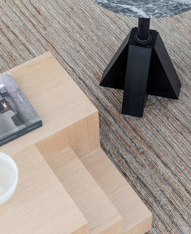 Добиться атмосферы вне времени удалось с помощью палитры сложных светлых оттенков, выразительных фактур и графичных деталей. Архитектор использовал эклектичное сочетание местных и международных брендов, в том числе журнальный столик M Low и столик M Side из собственной коллекции мебели Monument, диваны Jardan, коврик Armadillo & Co, светильники Dunlin.