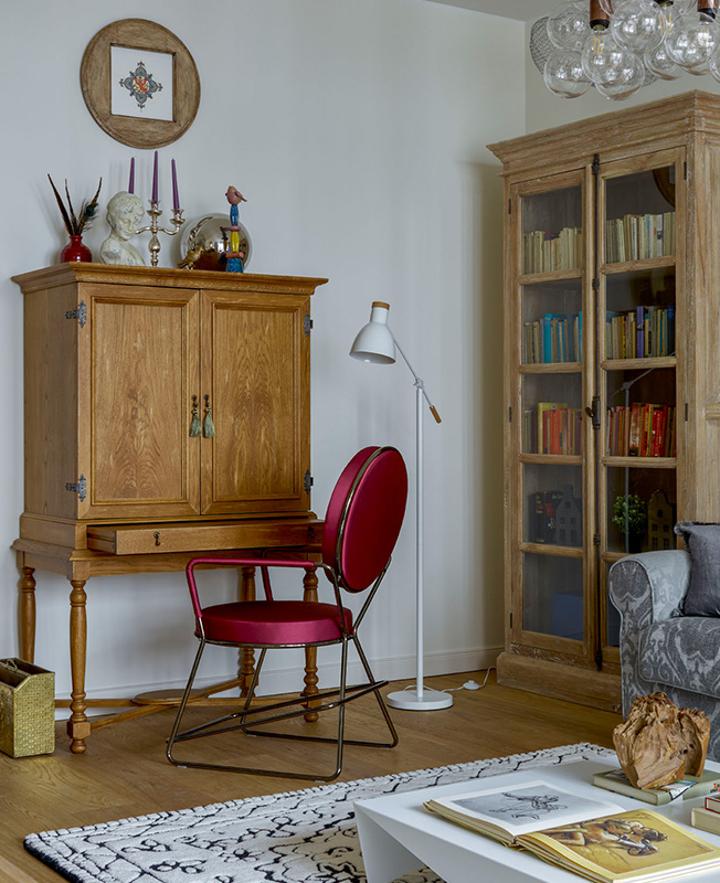 В квартире уже сложилась планировка, были выкрашены стены и настелены полы, стояли двери и сантехника. Так что авторы сконцентрировались на декорировании. Архитекторы по образованию, Хомяковы тем не менее уважительно относятся к декору. Как и все их проекты, квартира в Дюссельдорфе полна оригинальных находок.