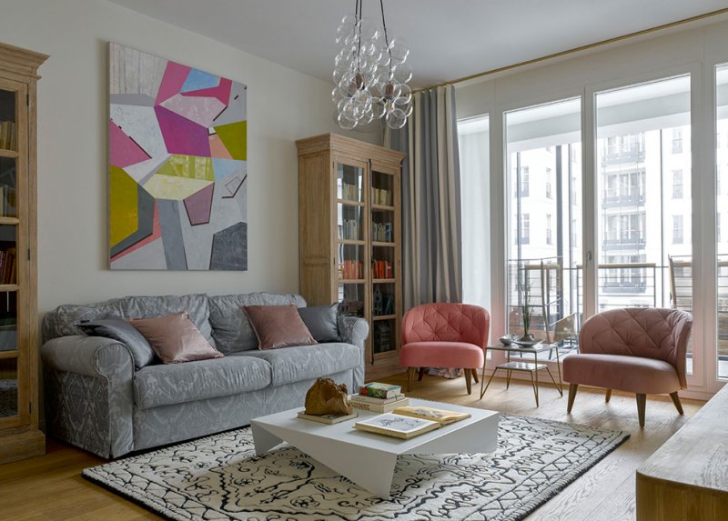 Гостиная. Над диваном работа авторства Светланы Хомяковой. «Создавая эскиз проекта, мы всегда дополняем его искусством. Если не можем найти произведение, похожее на задуманное, выполняем его сами».