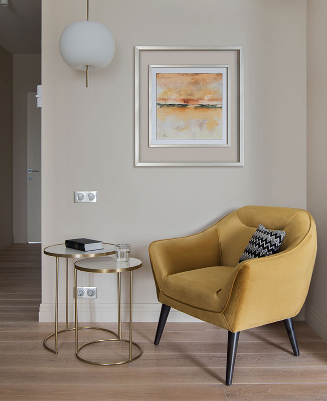 В интерьере много натуральных материалов — дерево, камень, металл, стекло. Дизайнер умышленно ушла от сильных контрастов к пастельным и мягким градиентам. Нейтральный фон стал беспроигрышным вариантом для введения природных оттенков — зеленого, пудрового, пыльного желтого. Они привносят в интерьер легкость, не дают глазам заскучать.