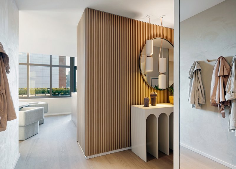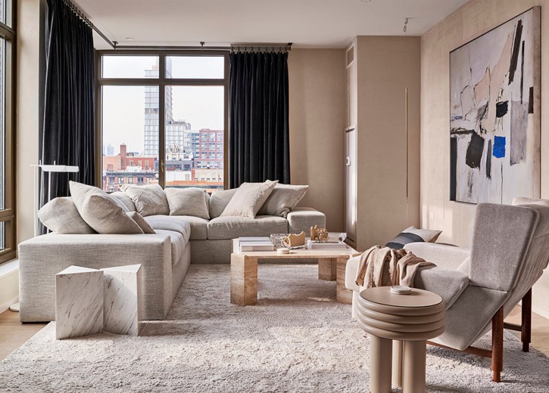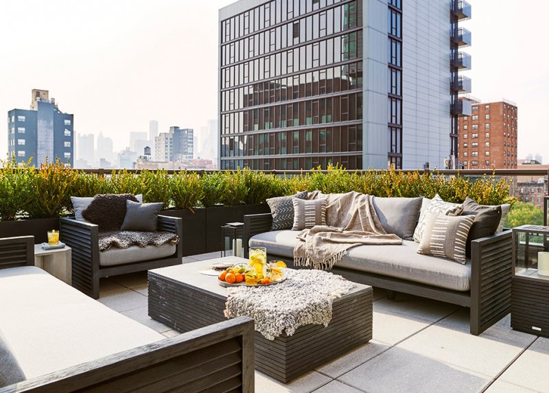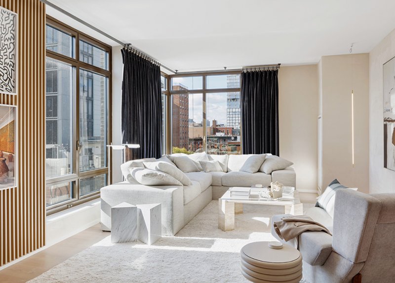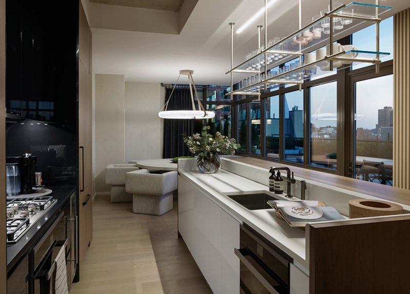 Площадь квартиры 200 кв. метров. Бонус — 150-метровая терраса, где будущие владельцы будут пить кофе по утрам, наслаждаясь видами Нижнего Манхэттена. После чего они могут переместиться в просторный опен спейс, залитый светом из панорамных окон.