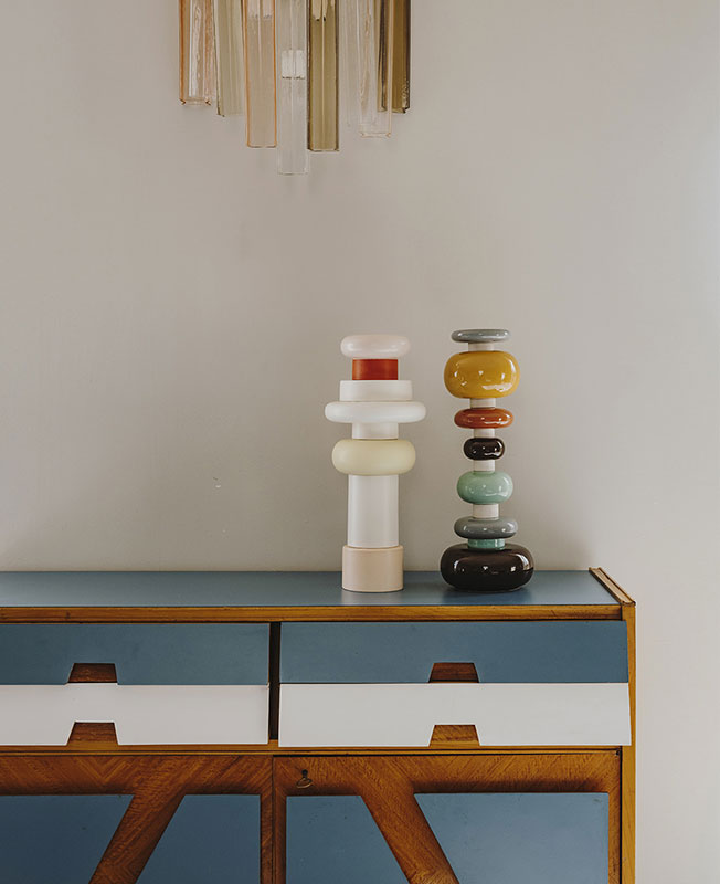 Некоторые старые черты палаццо, такие как красивые деревянные рамы и мраморные полы, были сохранены. Светильники 1950-х, муранские вазы 1940-х от Barovier & Toso и Venini отлично дополнили общий стиль середины века.